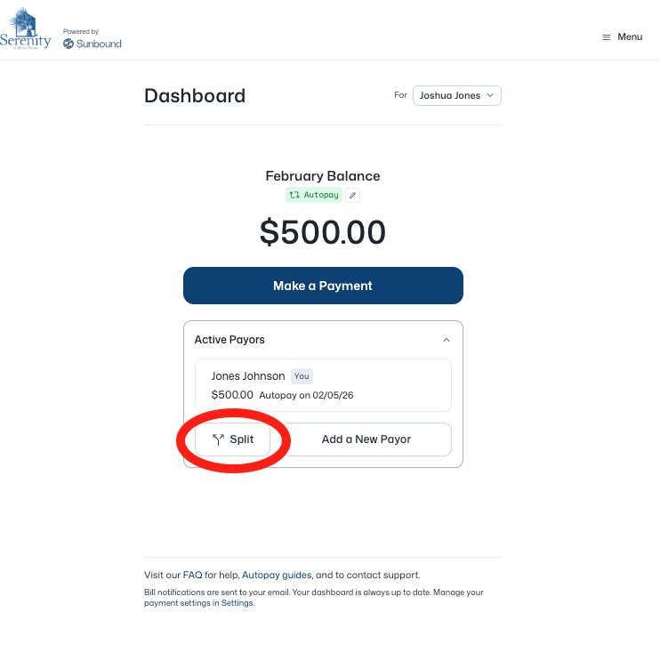 If there isn’t a balance yet, you can still set up another payor account to split the bill with!
